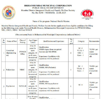 Vacancy for Various Unani posts, Brihanmumbai Municipal Corporation.