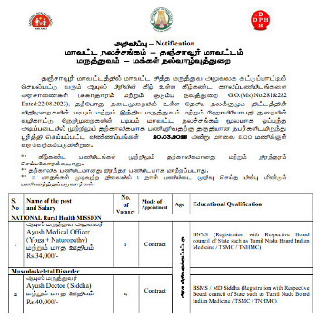 Vacancy for the post of Ayush Medical Officer Yoga, Government of Tamil Nadu.