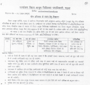 Walk-in Interview for the post of Yoga Instructor, Government of Jharkhand, Garhwa.