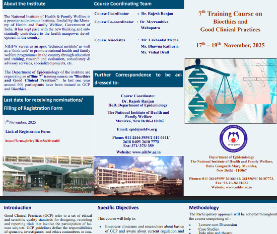 7th Training Course on Bioethics and Good Clinical Practices, Organized by National Institute of Health and Family Welfare, New Delhi.