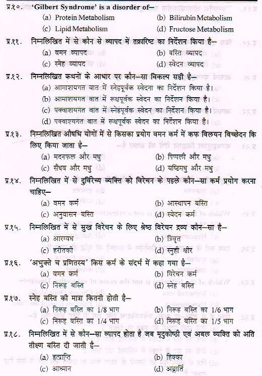 Ayurveda PG Entrance Exam 2017 Hindi Test Paper(AIAPGET-2017)