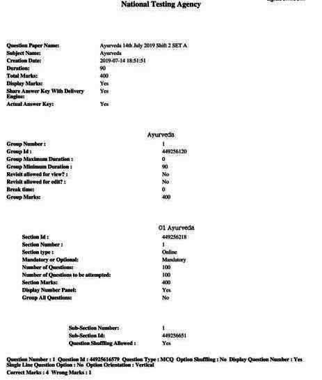 Ayurveda PG Entrance Exam 2019 Test Paper(AIAPGET-2019)
