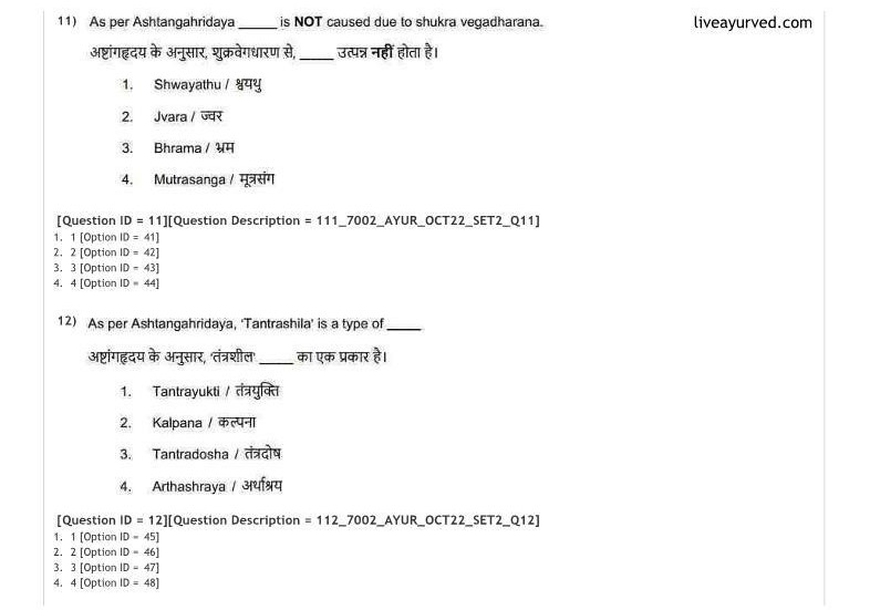 Ayurveda PG Entrance Exam 2022 Test Paper(AIAPGET-2022)