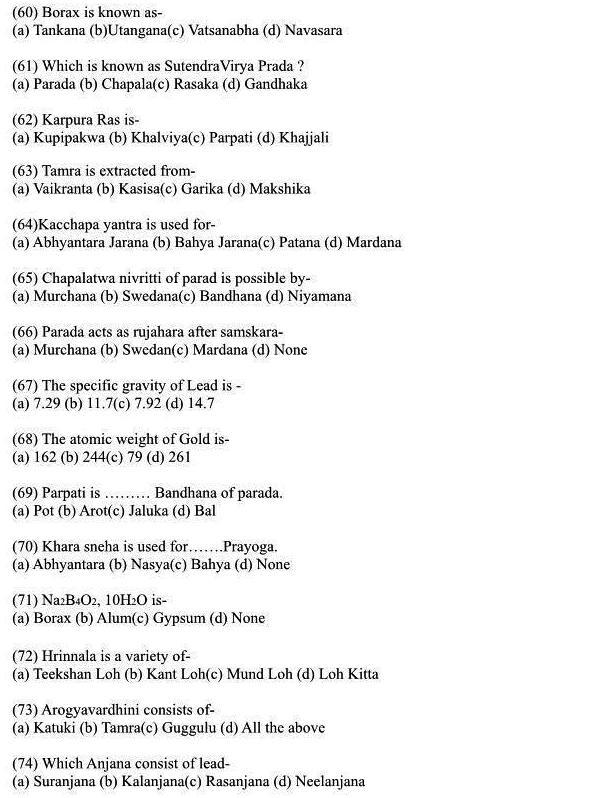 MCQs on Ayurveda