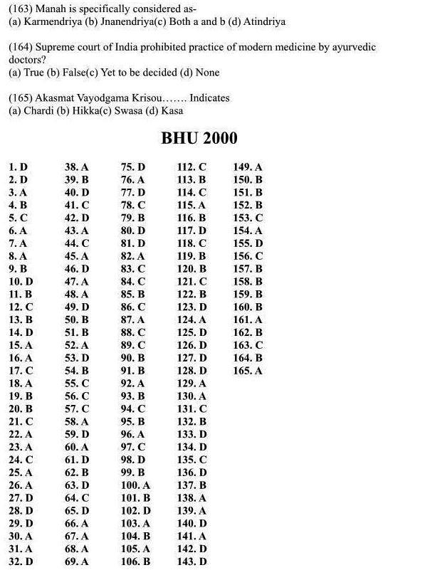BHU Ayurveda PG Entrance examination 2000 Test Paper