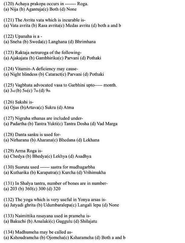 Ayurveda MD/MS Entrance Examination Previous Years Question Papers,ayurveda pg entrance question papers,Ayurveda PG Entrance examination,Sample question papers for Ayurveda