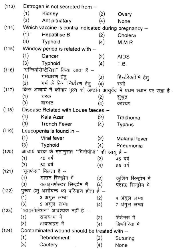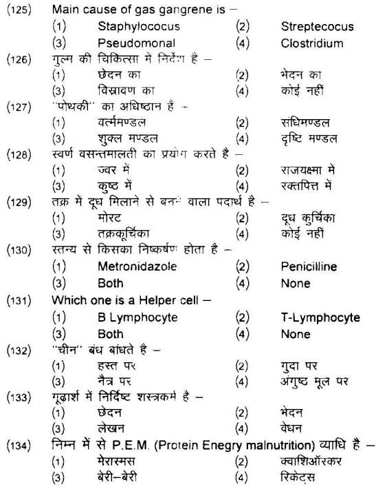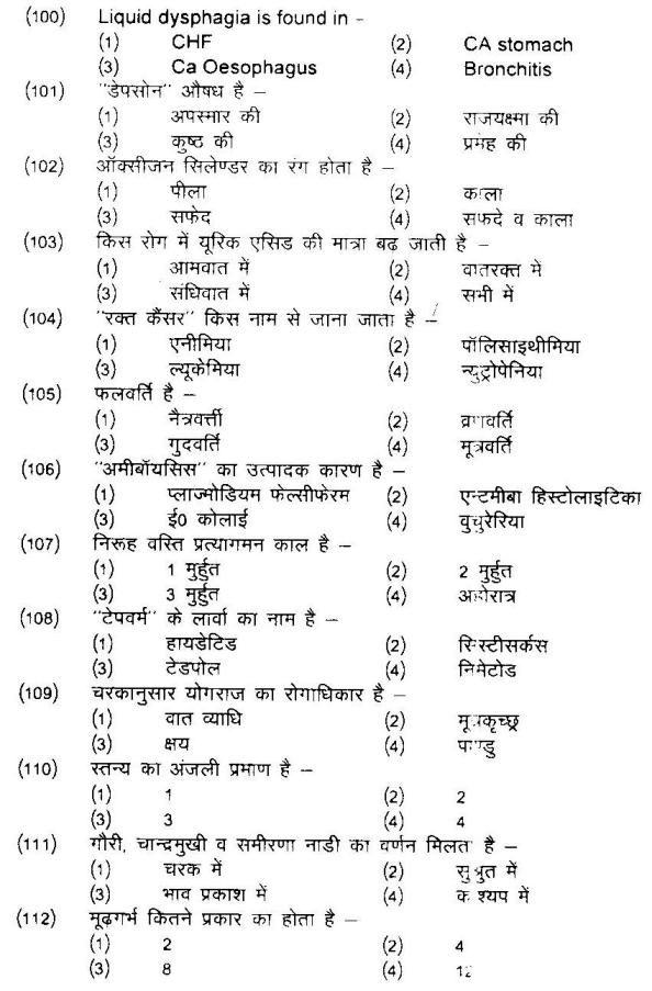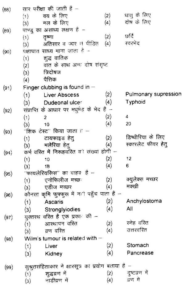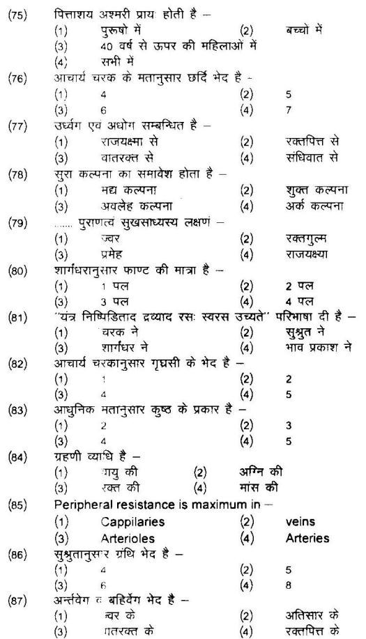 BHU Ayurveda PG Entrance examination 2003 Test Paper