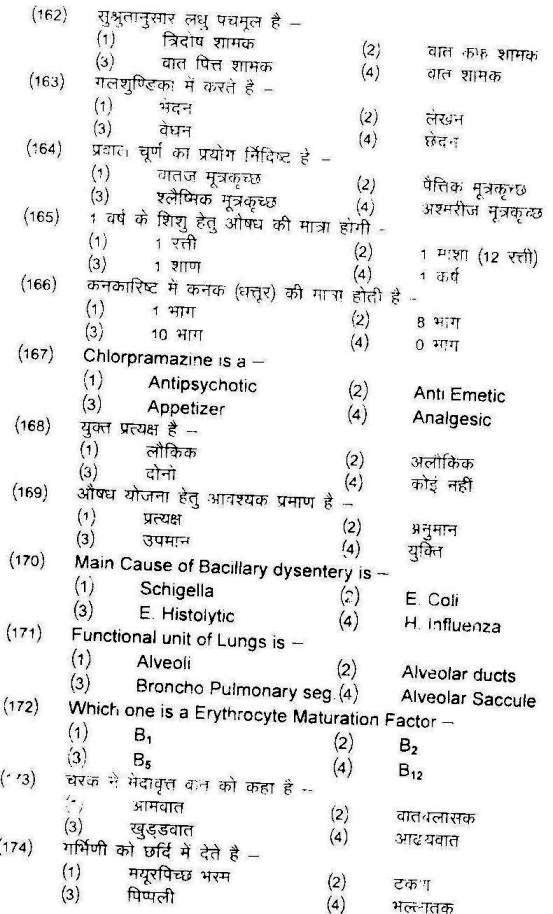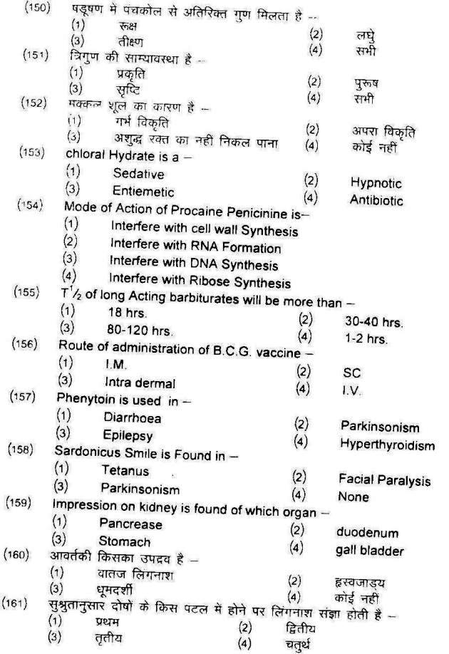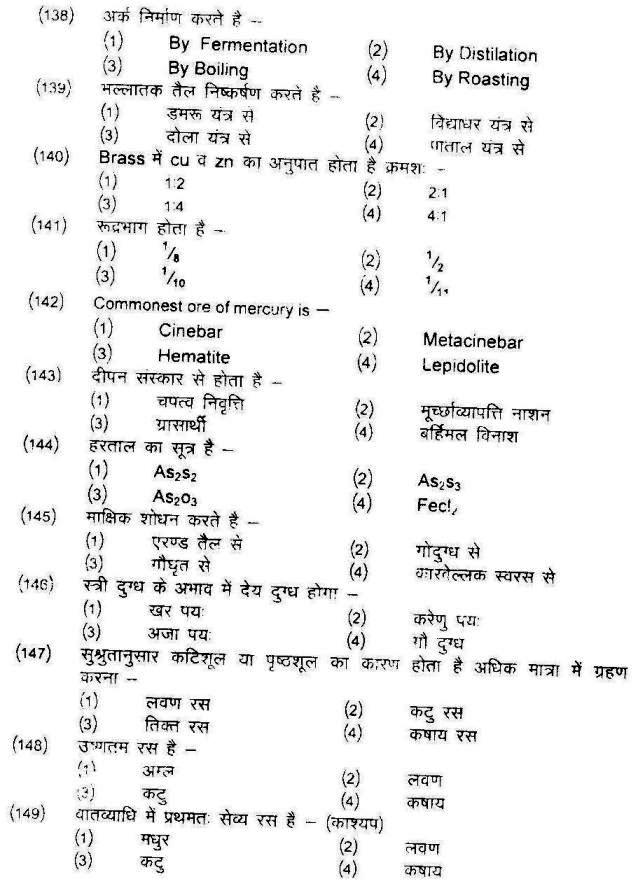 BHU Ayurveda PG Entrance examination 2004 Test Paper