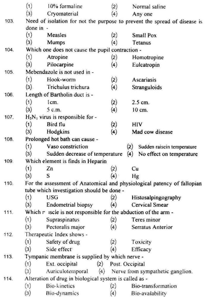 BHU Ayurveda PG Entrance examination 2006 Test Paper