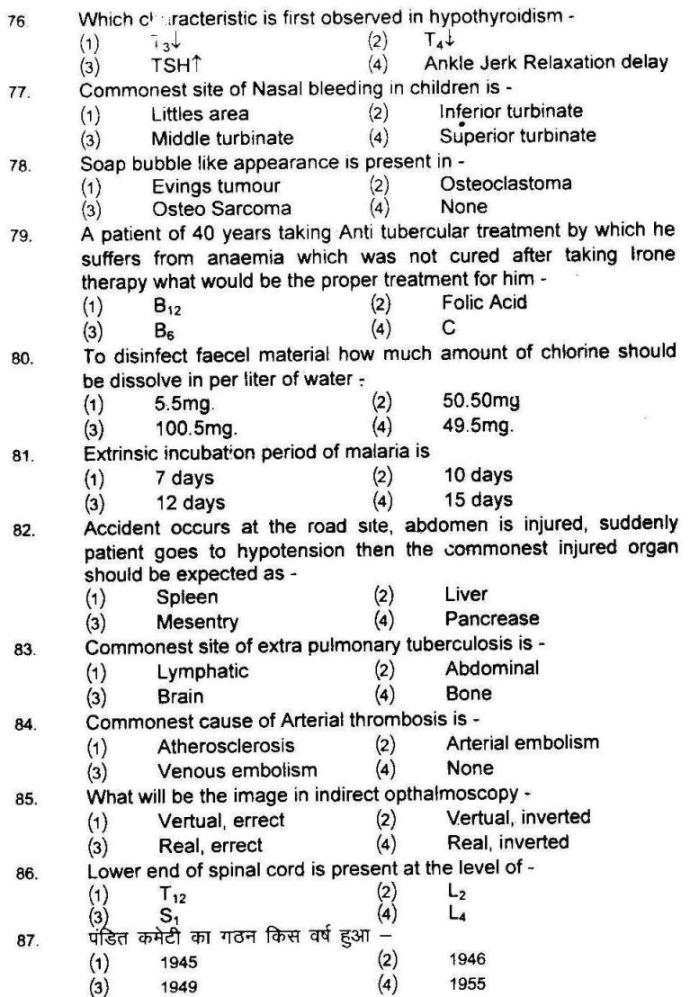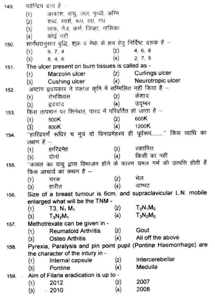 BHU Ayurveda PG Entrance examination 2006 Test Paper
