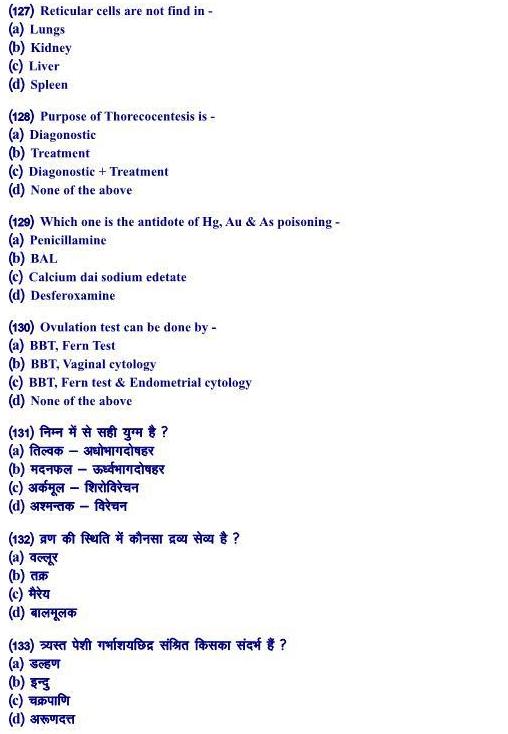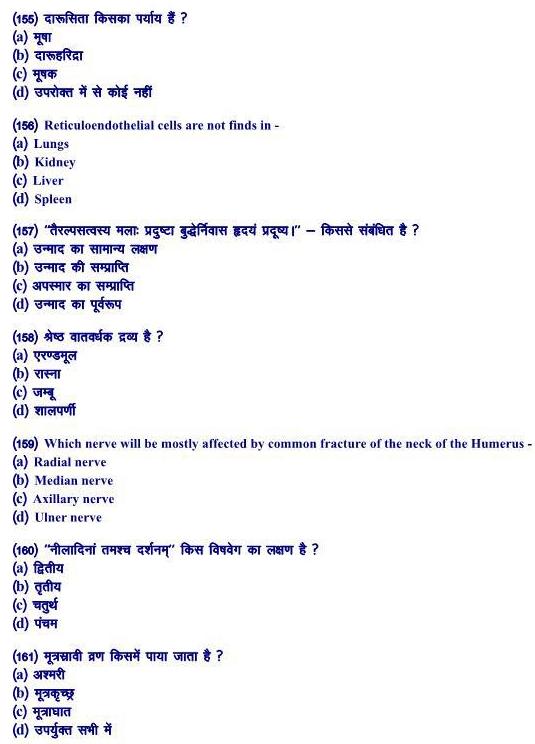BHU Ayurveda PG Entrance examination 2008 Test Paper