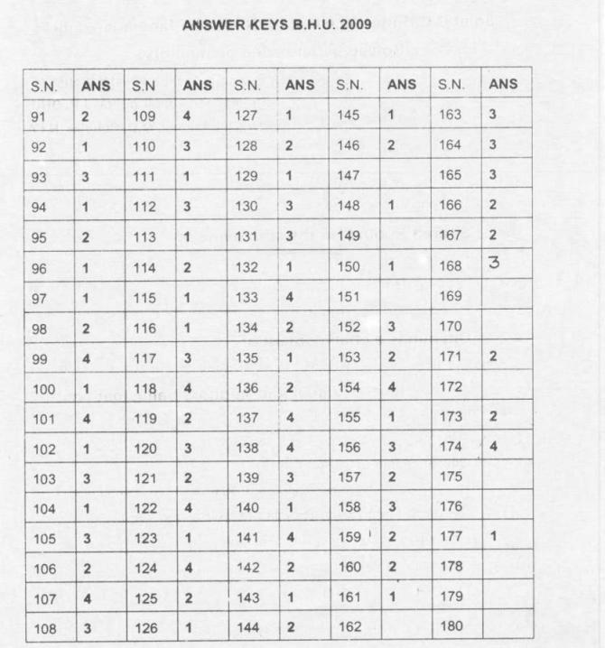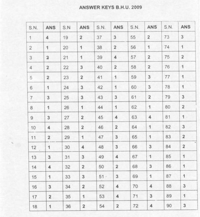 BHU Ayurveda PG Entrance examination 2009 Test Paper