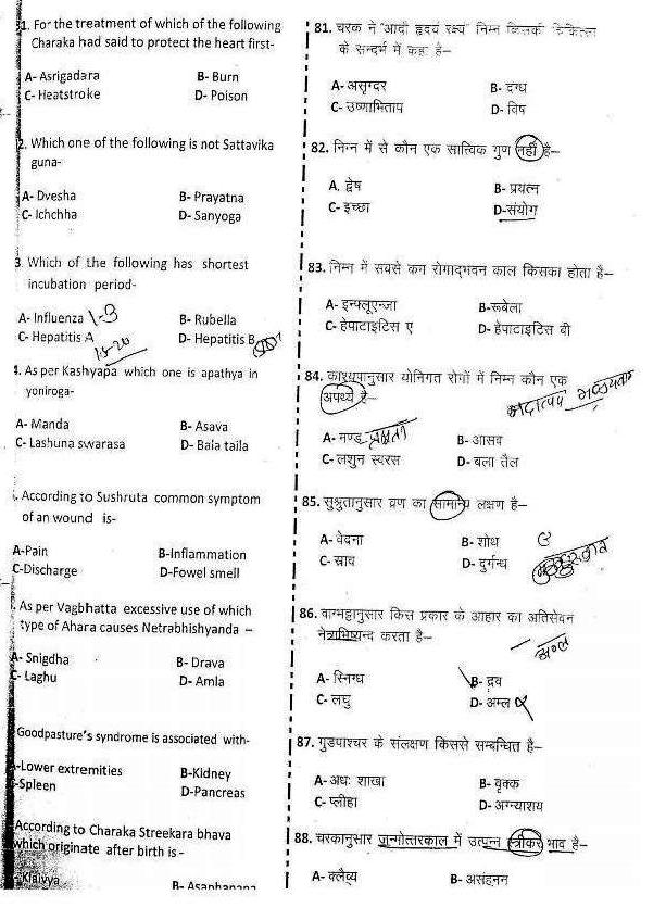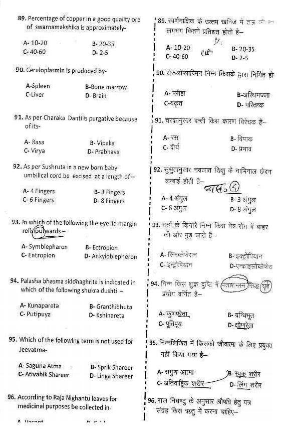 BHU Ayurveda PG Entrance examination 2011 Test Paper