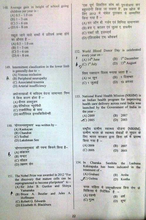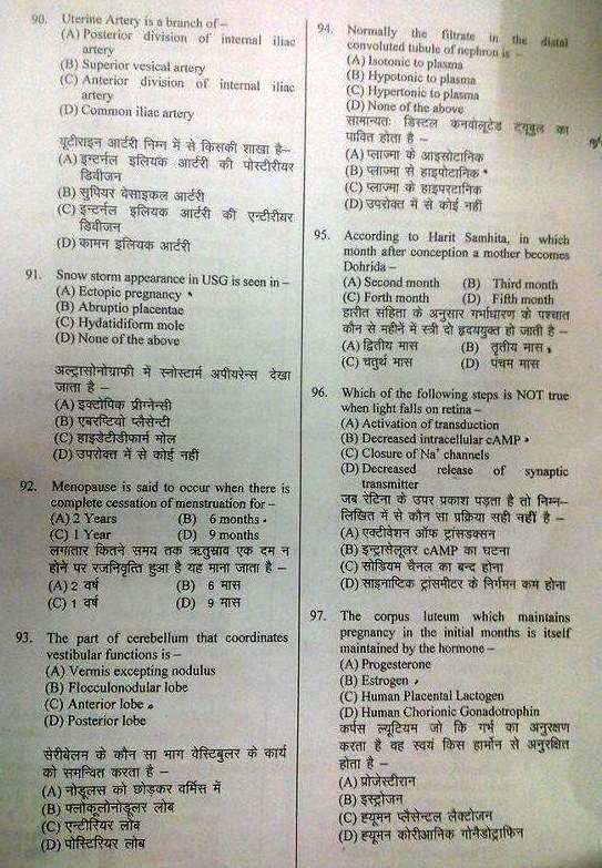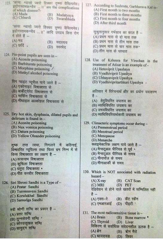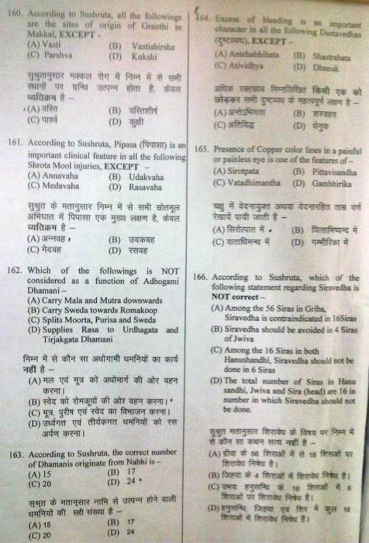 BHU Ayurveda PG Entrance examination 2013 Test Paper