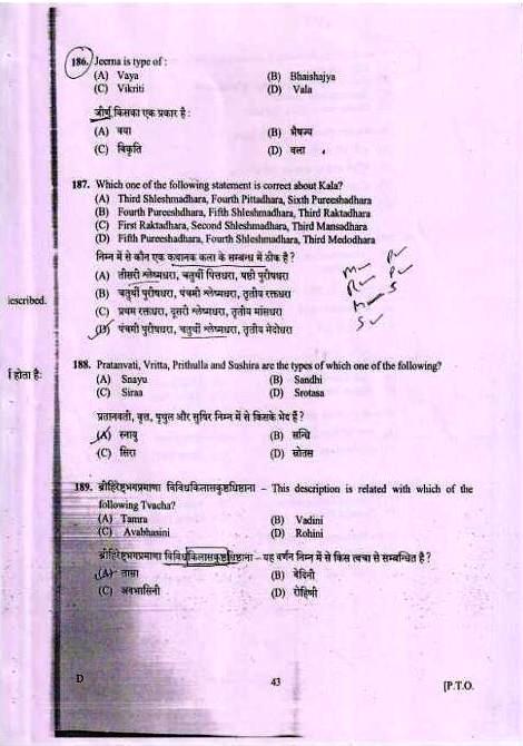 BHU Ayurveda PG Entrance examination 2015 Test Paper