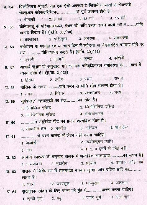 BHU Ayurveda PG Entrance Exam 2017 Test Paper