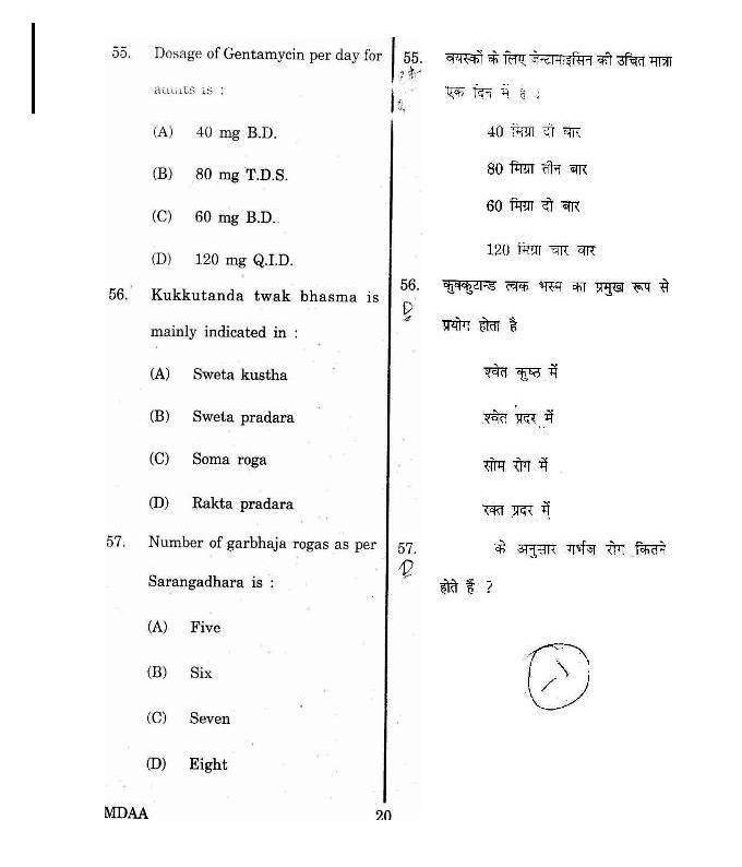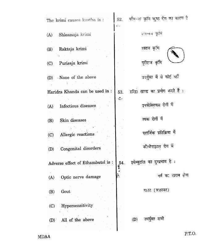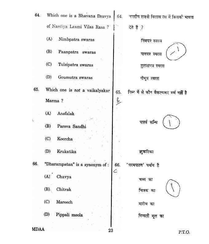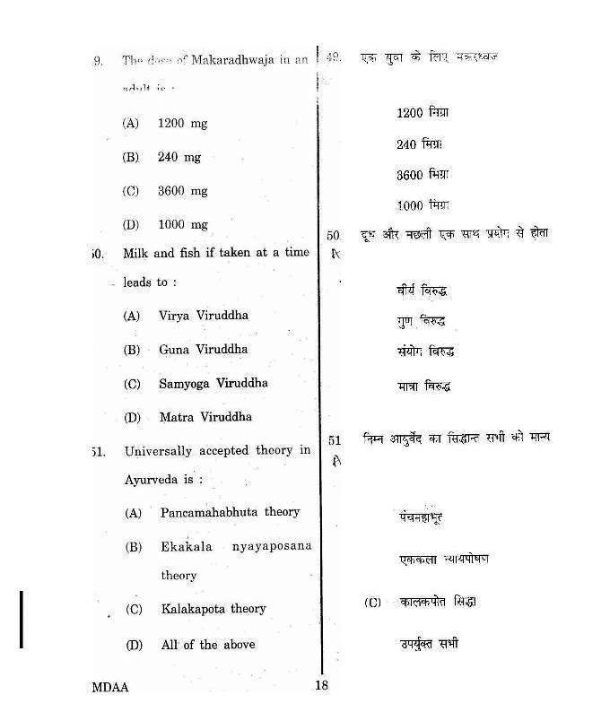 Delhi Ayurveda PG Entrance examination 2011 Test Paper