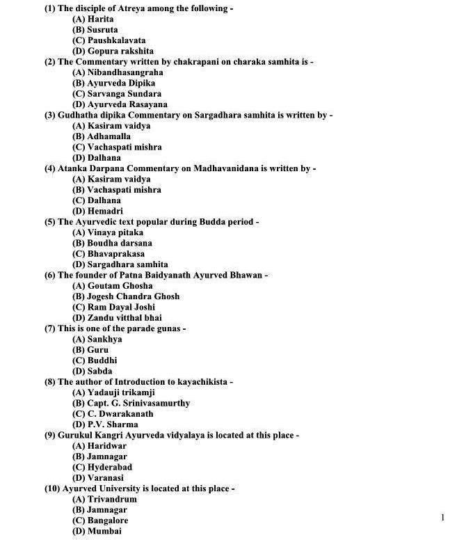 Ayurveda MD/MS Entrance Examination Previous Years Question Papers,ayurveda pg entrance question papers,Ayurveda PG Entrance examination,Sample question papers for Ayurveda