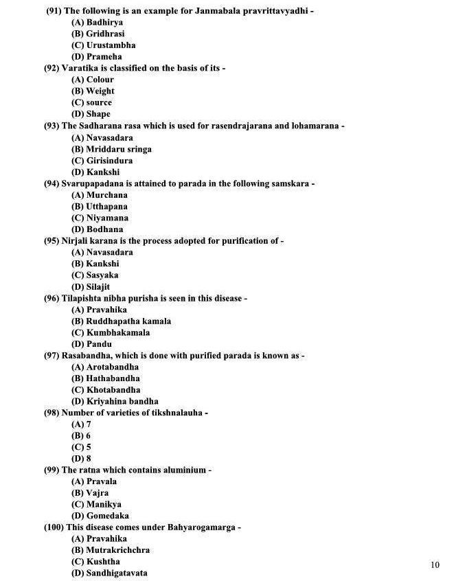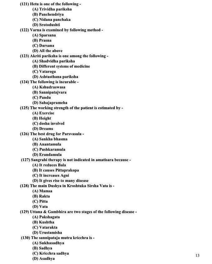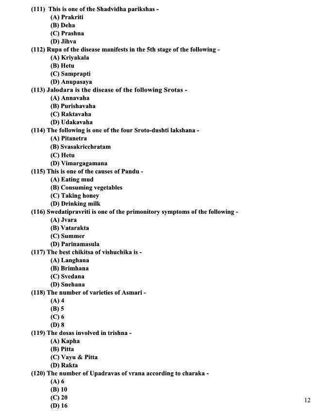 Ayurveda MD/MS Entrance Examination Previous Years Question Papers,ayurveda pg entrance question papers,Ayurveda PG Entrance examination,Sample question papers for Ayurveda