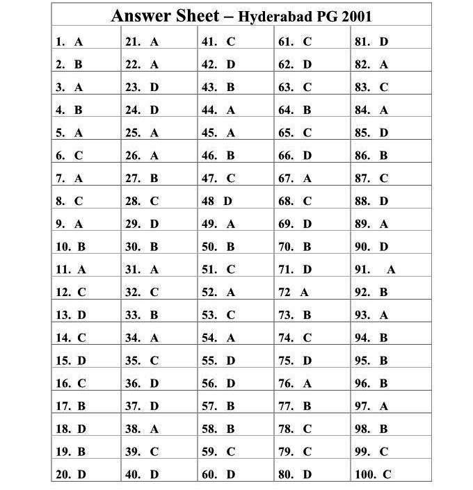 Hyderabad Ayurveda PG Entrance examination 2001 Test Paper