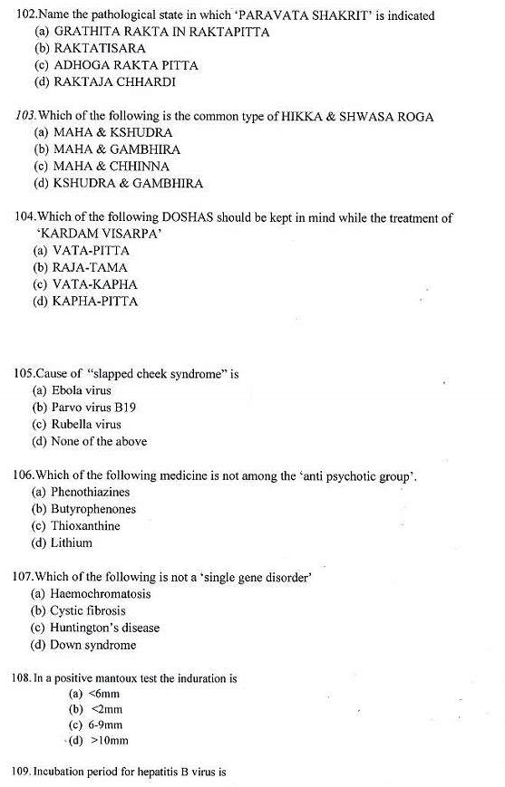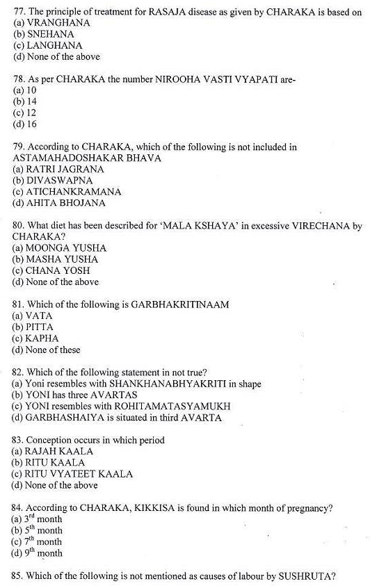 Ayurveda MD/MS Entrance Examination Previous Years Question Papers,ayurveda pg entrance question papers,Ayurveda PG Entrance examination,Sample question papers for Ayurveda