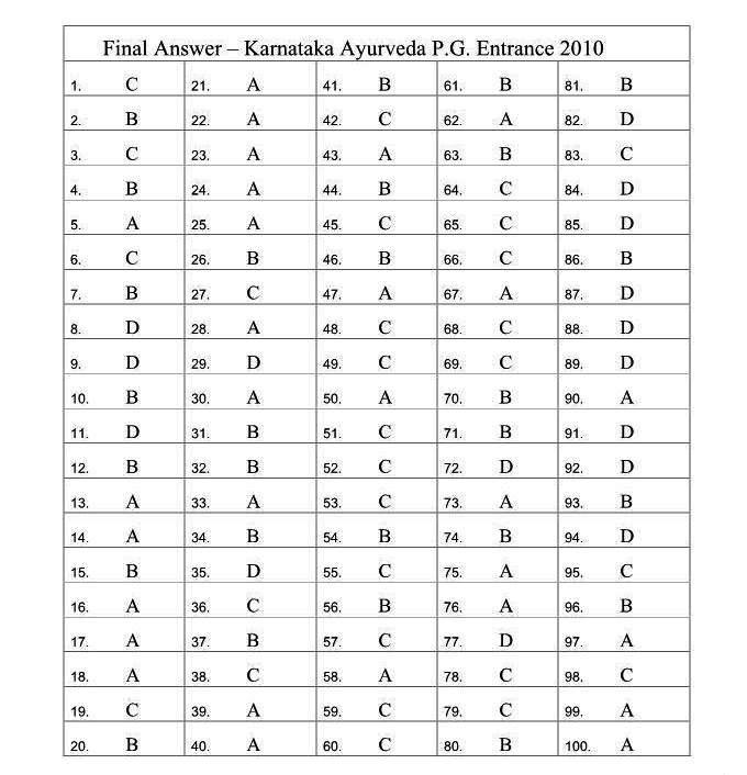 Karnataka Ayurveda PG Entrance examination 2010 Test Paper