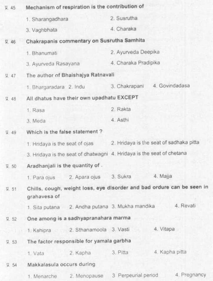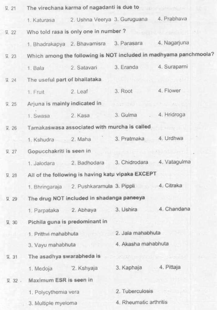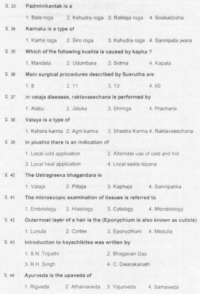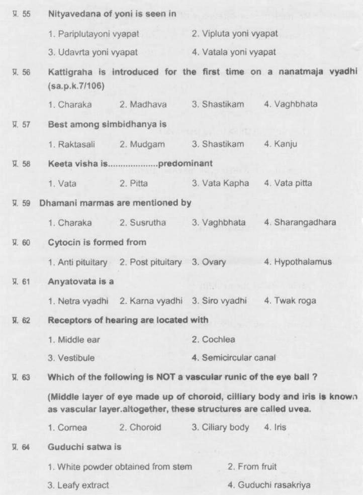 Karnataka Ayurveda PG Entrance Exam 2012 Test Paper
