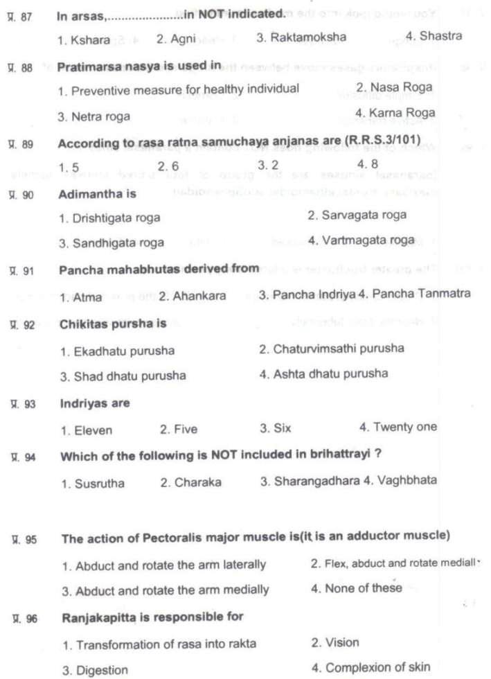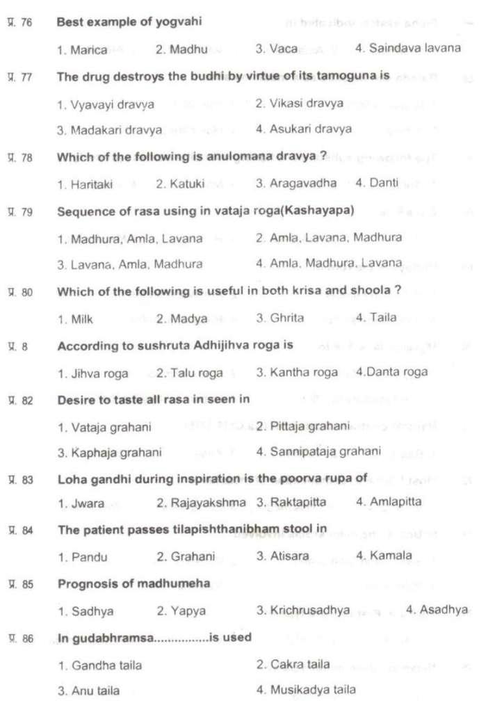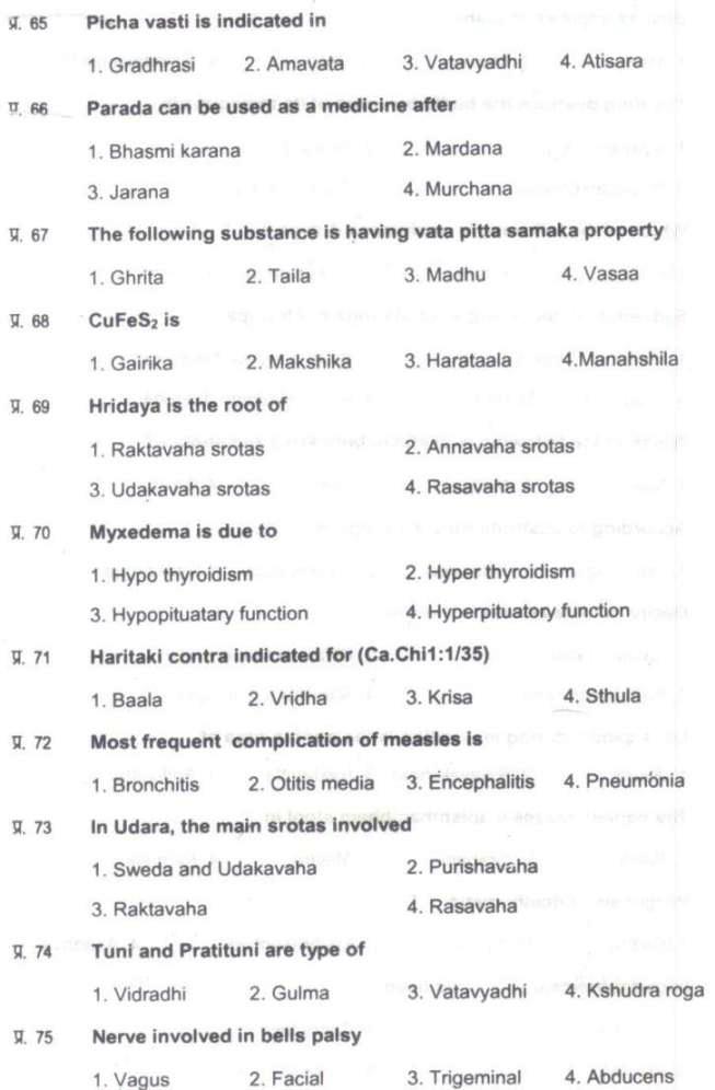 Karnataka Ayurveda PG Entrance Exam 2012 Test Paper