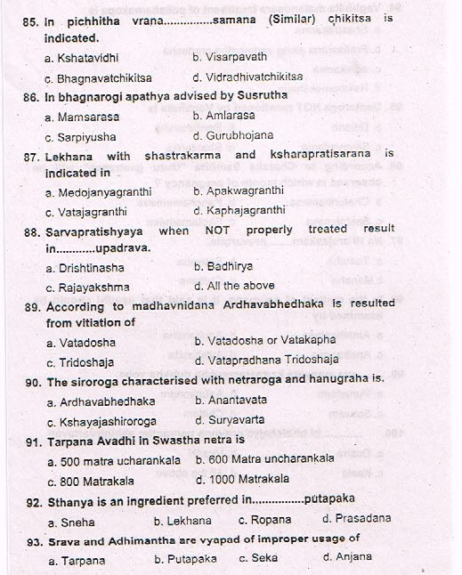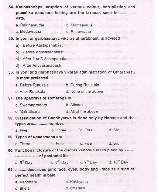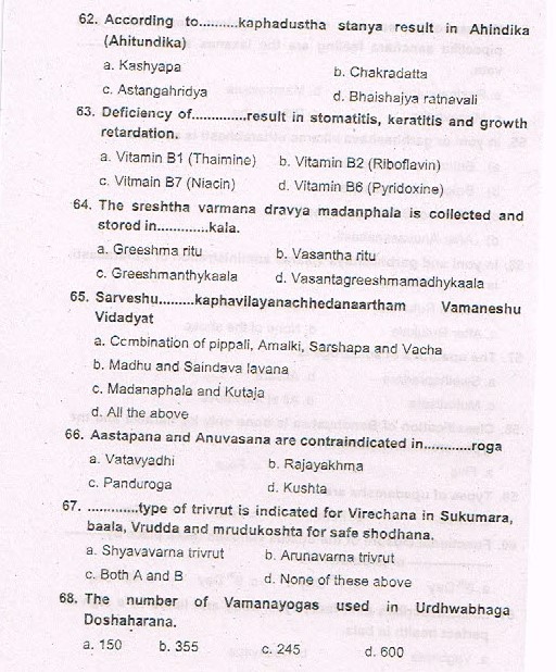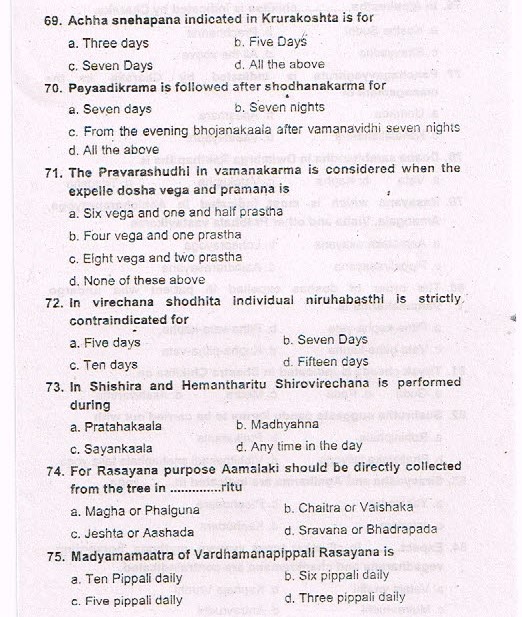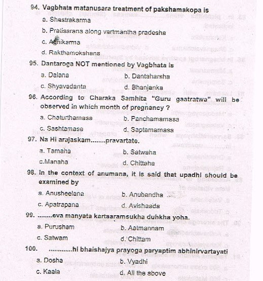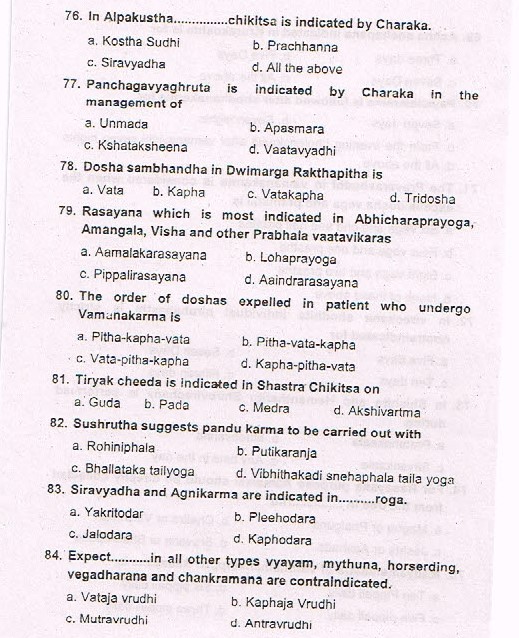 Karnataka Ayurveda PG Entrance Exam 2015 Test Paper