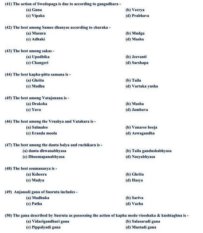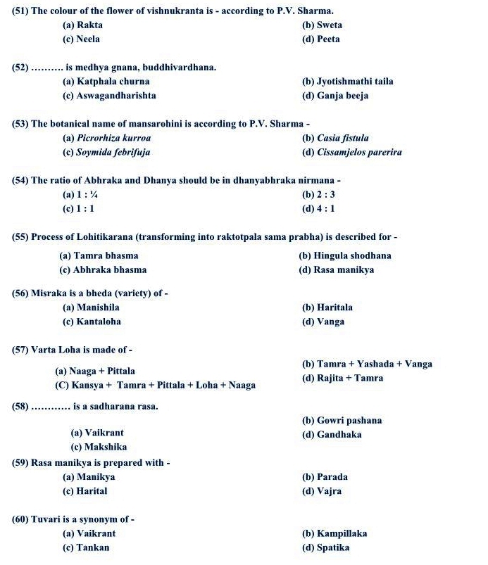 Ayurveda MD/MS Entrance Examination Previous Years Question Papers,ayurveda pg entrance question papers,Ayurveda PG Entrance examination,Sample question papers for Ayurveda
