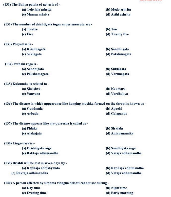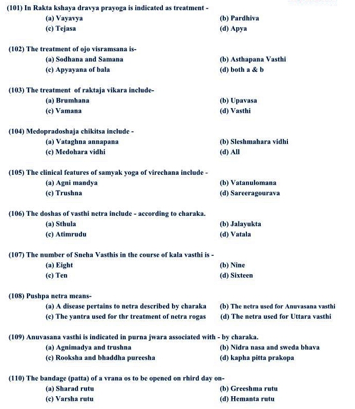 Ayurveda MD/MS Entrance Examination Previous Years Question Papers,ayurveda pg entrance question papers,Ayurveda PG Entrance examination,Sample question papers for Ayurveda