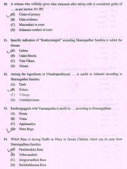 Kerala Ayurveda PG Entrance examination 2012 Test Paper