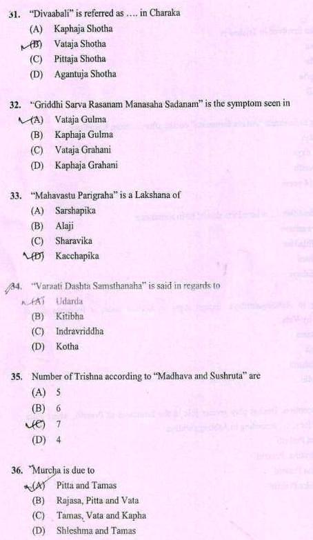 Ayurveda MD/MS Entrance Examination Previous Years Question Papers,ayurveda pg entrance question papers,Ayurveda PG Entrance examination,Sample question papers for Ayurveda