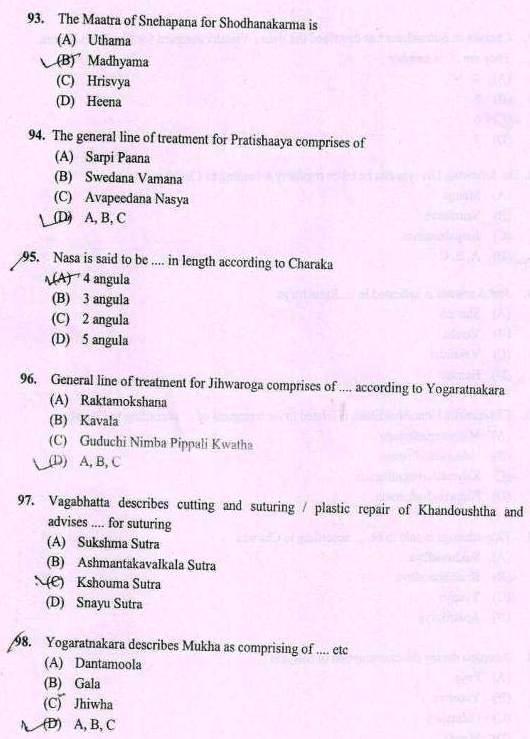 Ayurveda MD/MS Entrance Examination Previous Years Question Papers,ayurveda pg entrance question papers,Ayurveda PG Entrance examination,Sample question papers for Ayurveda