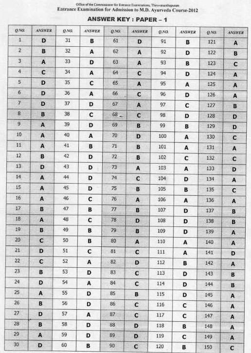 Kerala Ayurveda PG Entrance examination 2012 Test Paper