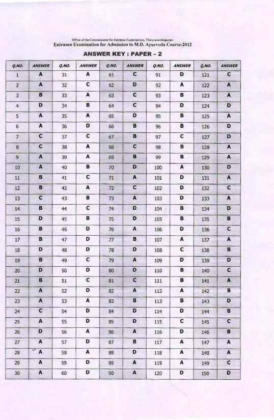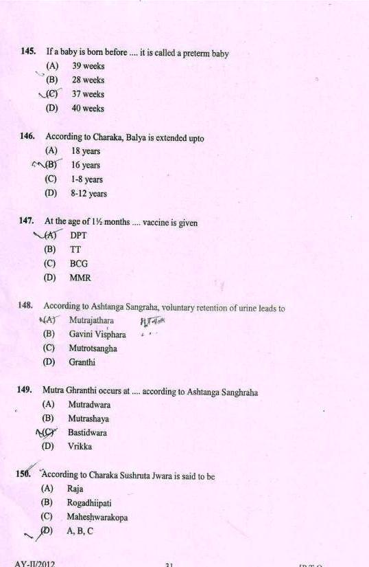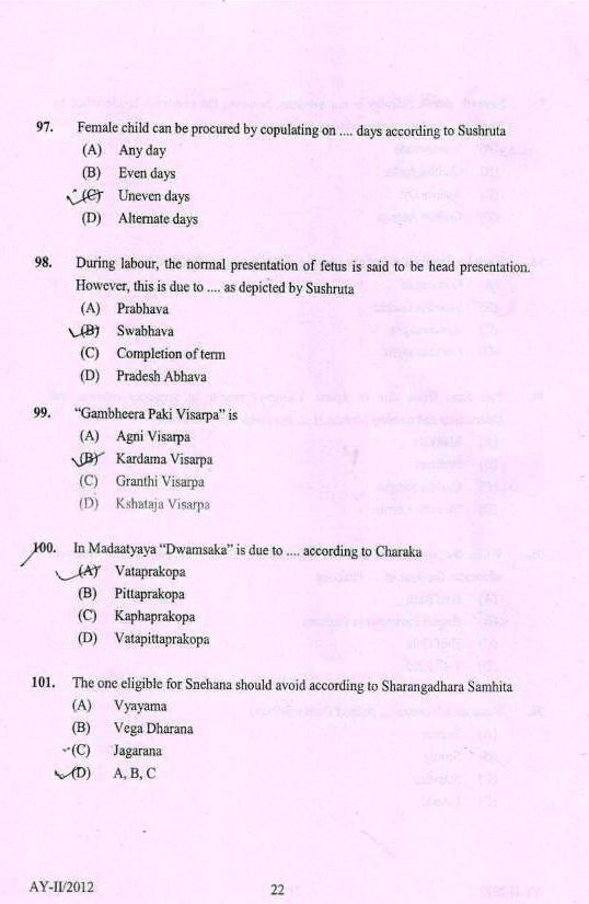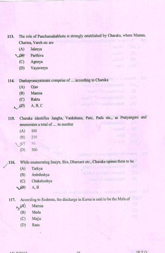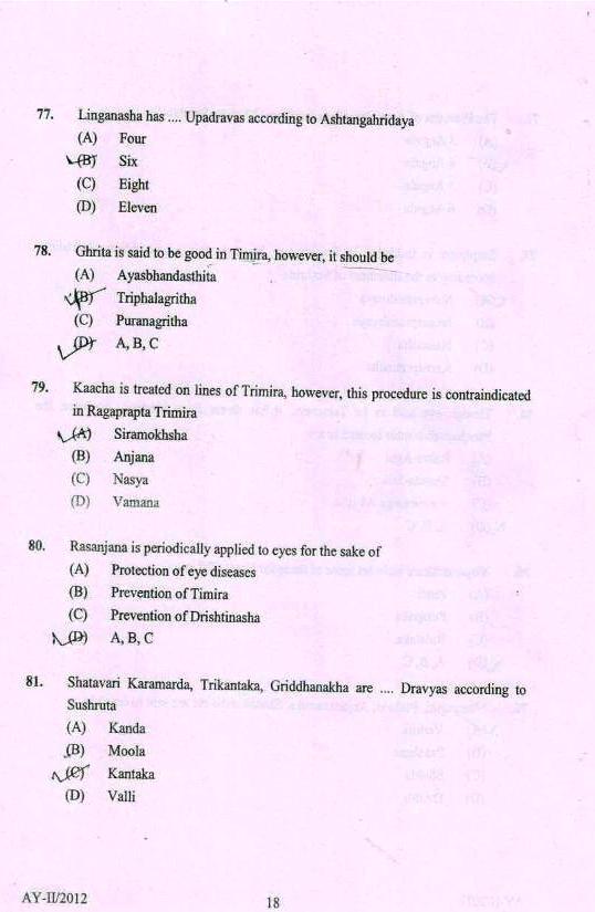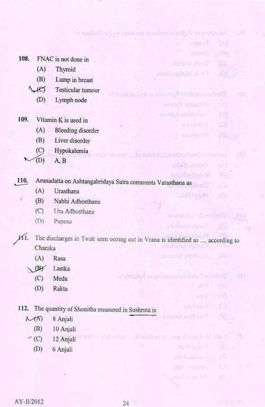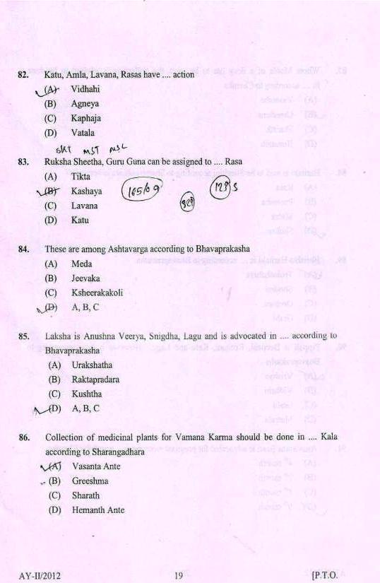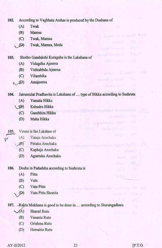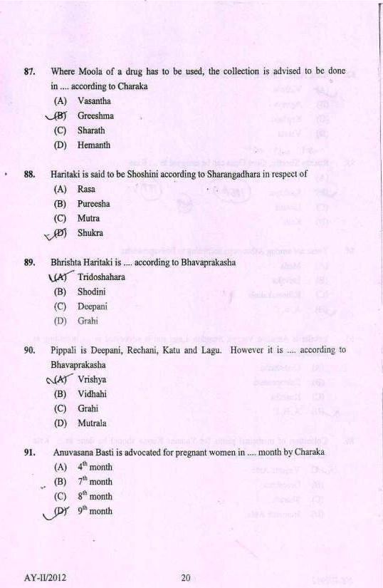 Kerala Ayurveda PG Entrance examination 2012 Test Paper
