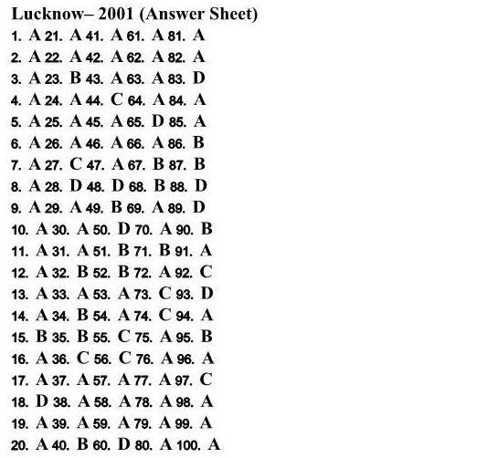 Lucknow Ayurveda PG Entrance examination 2001 Test Paper