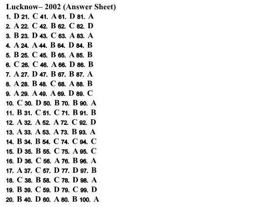 Lucknow Ayurveda PG Entrance examination 2002 Test Paper