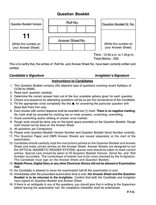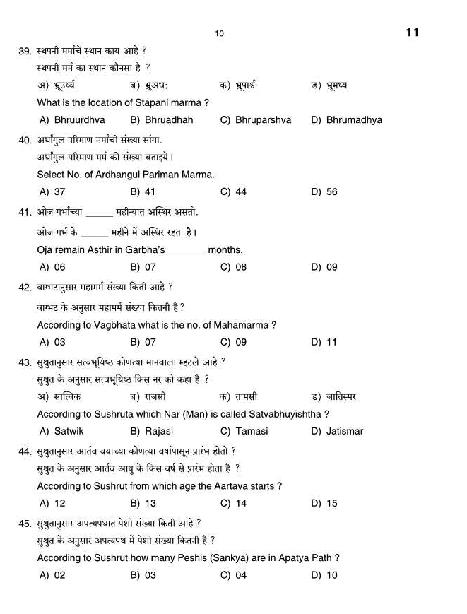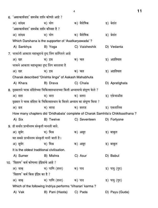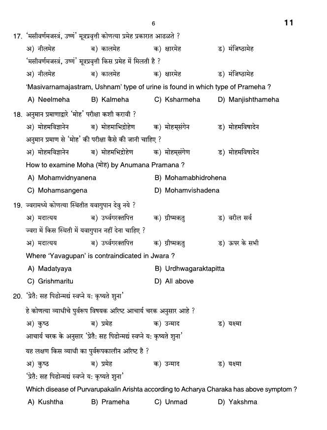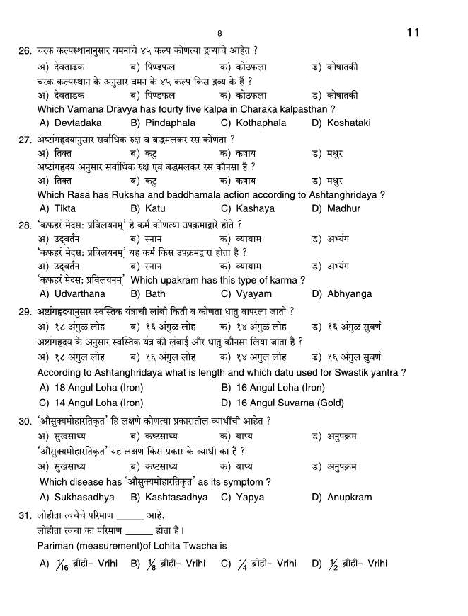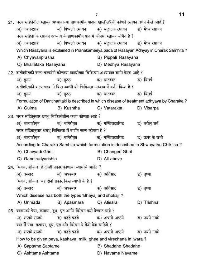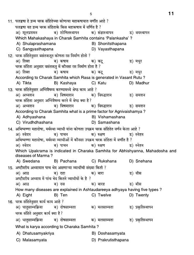Maharashtra Ayurveda PG Entrance examination 2015 Test Paper