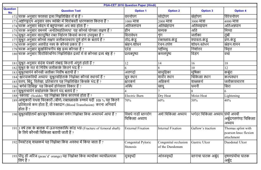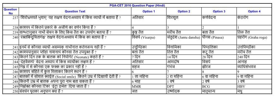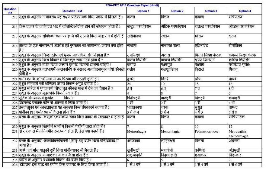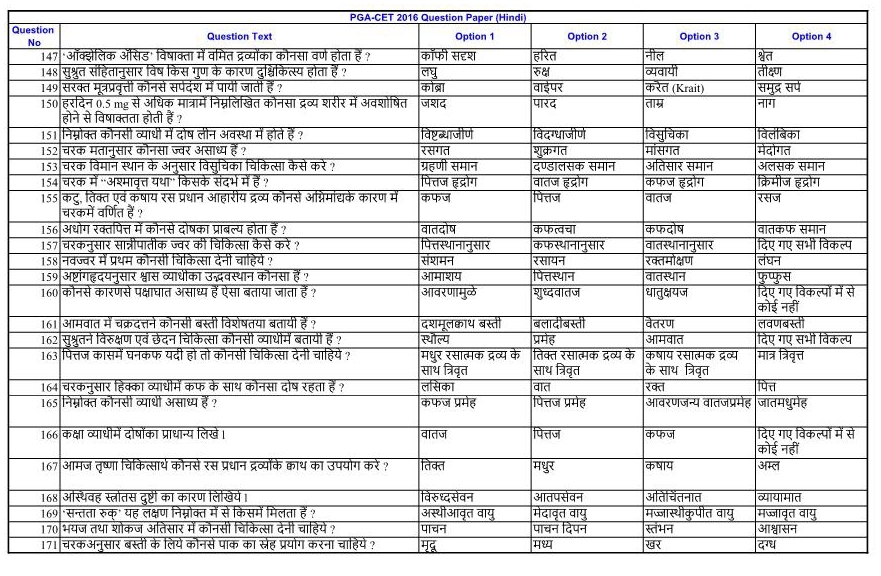 Ayurveda PG Entrance examination 2016 Test Paper(PGACET-2016)