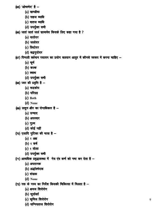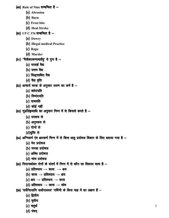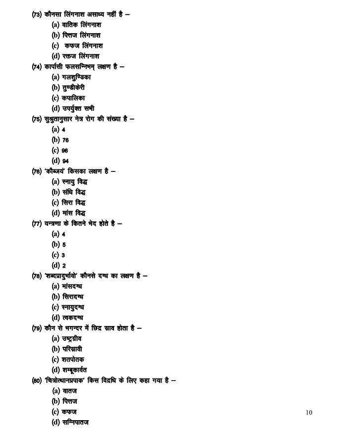 Raipur Ayurveda PG Entrance examination 2010 Test Paper