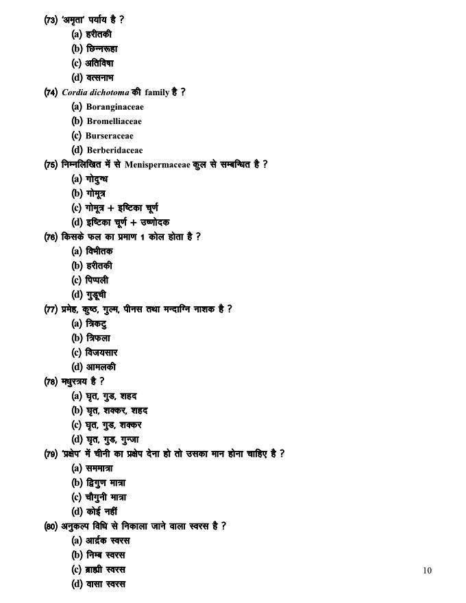 Raipur Ayurveda PG Entrance examination 2011 Test Paper