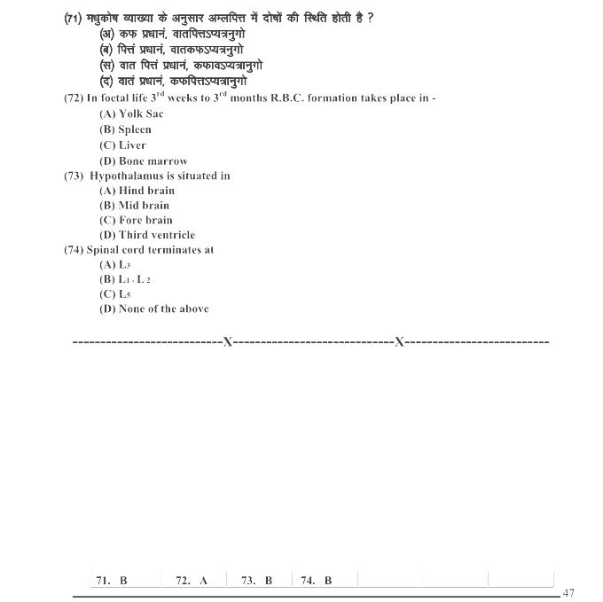 Udaipur Ayurveda PG Entrance examination 2005 Test Paper