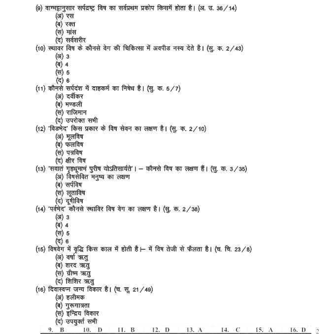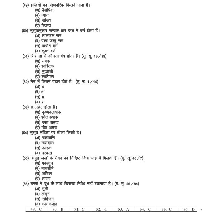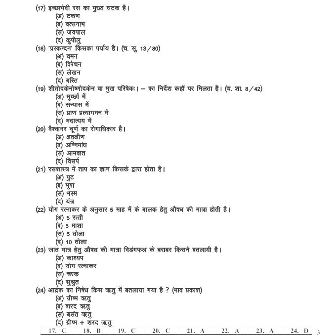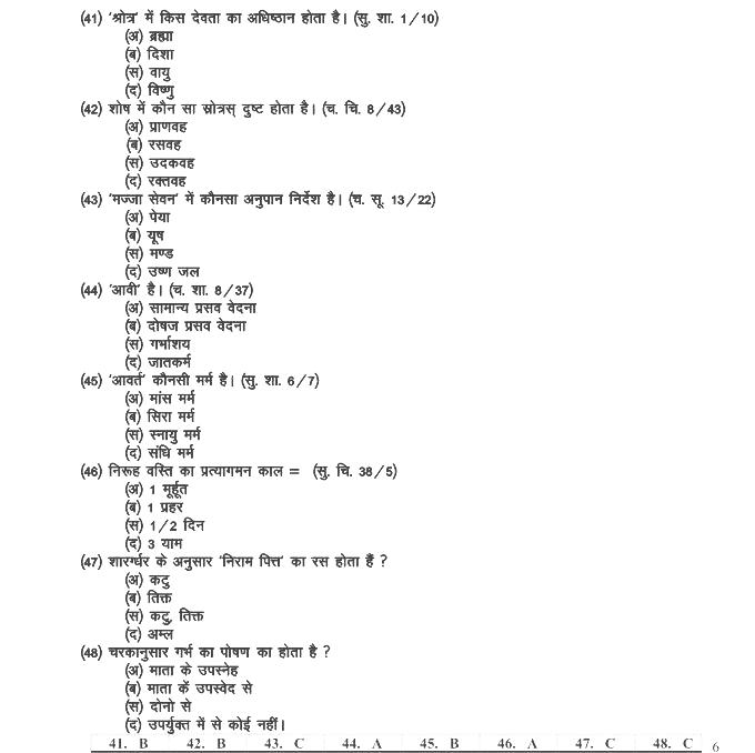 Ujjain Ayurveda PG Entrance examination 2006 Test Paper