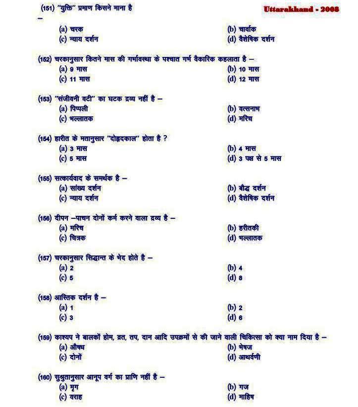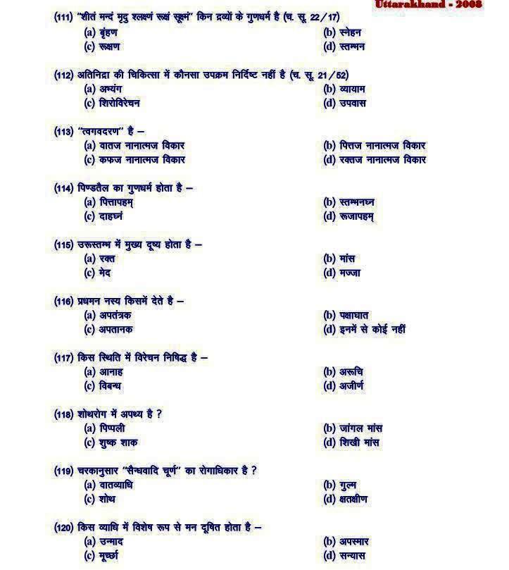 Uttarakhand Ayurveda PG Entrance examination 2008 Test Paper