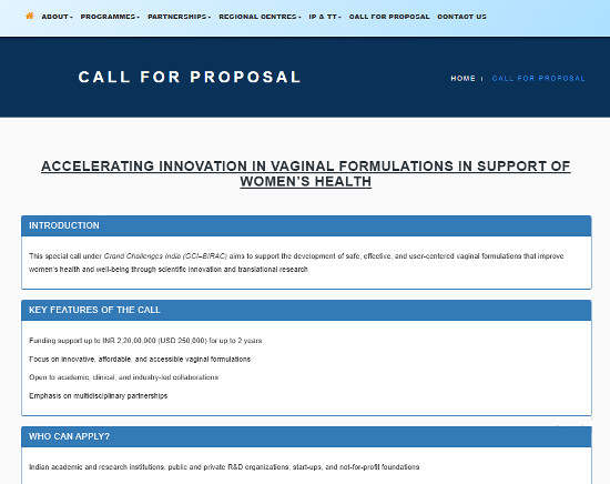 Call for Proposal: Accelerating Innovation in Vaginal Formulations in Support of Women's Health, Organized by Biotechnology Industry Research Assistance Council.