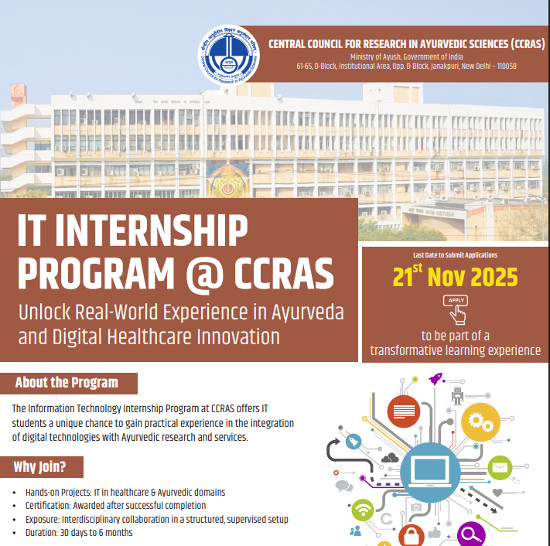 IT Internship Program: Unlock Real-World Experience in Ayurveda and Digital Healthcare Innovation, Organized by Central Council for Research in Ayurvedic Sciences, New Delhi.