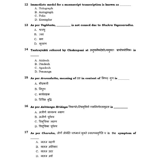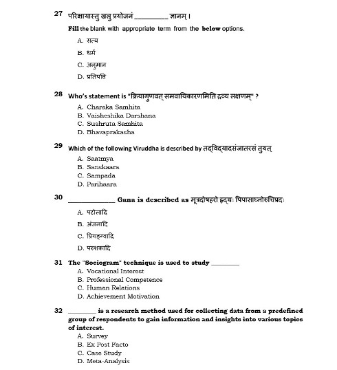 Ph.D Entrance Exam AIIA Ayurveda Samhita & Siddhanta 2022 Test Paper