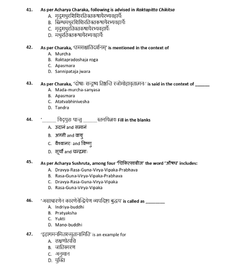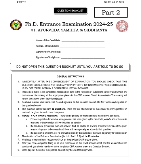 Ph.D Entrance Exam AIIA Ayurveda Samhita & Siddhanta 2024 Test Paper
