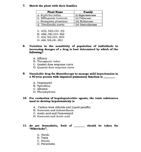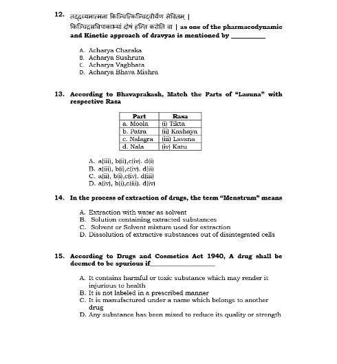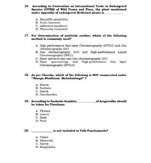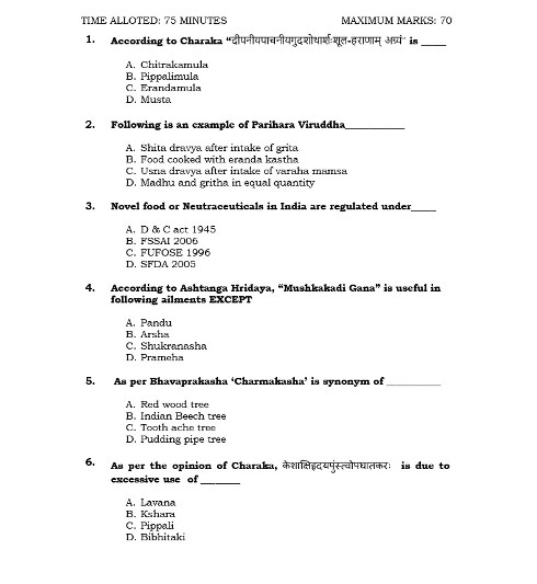 Ph.D Entrance Exam AIIA Dravyaguna Vigyan 2022 Test Paper